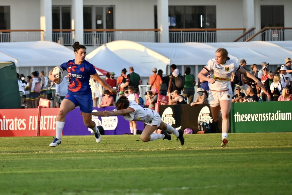 Neuvièmes lors de la première étape, les Bleus de France 7 étaient piqués au vif et ont dominé d’entrée les champions olympiques fidjiens (17-22). Difficile de faire mieux même si la deuxième rencontre voyait les joueurs de Jérôme Daret buté encore sur l’Argentine (21-14) après avoir rendu de trop nombreuses munitions. Cette fois-ci, le groupe tricolore est allé arracher sa place en quart de Cup face à l’Espagne à la fin du premier jour (33-14). Le lendemain en tout début de matinée, les coéquipiers de Paulin Riva croquaient d’abord les États-Unis (12-28) à l’issue d’un quart maîtrisé avant de s’incliner sur la sirène face à l’Afrique du Sud en demie (12-19). Une défaite frustrante mais qui a montré que la France était capable d’accrocher la nation qui ultra-domine le Sevens mondial aujourd’hui. À bout physiquement sur la petite finale, les Tricolores prenaient l’eau face aux Argentins (38-21) et terminaient quatrièmes. Une belle réaction et des progrès collectifs déjà visibles pour ce groupe masculin dans lequel plusieurs joueurs découvraient les World Series. Mention spéciale pour le Toulousain, Nelson Épée, auteur de six essais dont un triplé contre les Américains.