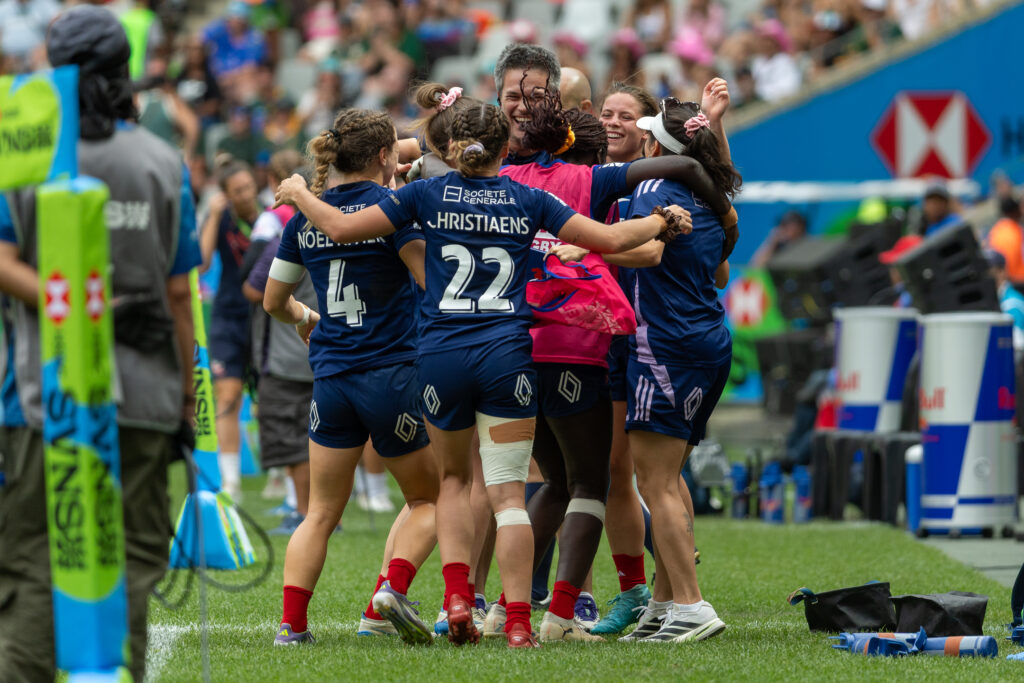 Un classement dans lequel les Françaises relèvent la tête ! Après une première sortie manquée à Dubaï, le cauchemar des Bleues aurait pu se prolonger au Cap, sèchement battues d’entrée par l’Australie 41 à 0. Néanmoins, le groupe emmené par Lili Dezou ne baissait pas les bras et remportait ses deux autres matchs de poule contre le Japon (29-19 ) et le Canada (31-12) pour obtenir sa première demie. Loin d’être impressionnées par leurs adversaires néo-zélandaises, les joueuses de Romain Huet scoraient les premières grâce à un cadrage débordement d’école d’Alycia Christiaens (7-0). Malheureusement pour elles, la Nouvelle-Zélande revenait à égalité juste avant la mi-temps grâce à Stacey Waaka, qui laissait ses partenaires dans la course (7-7). Manquant de réalisme en seconde période, les Françaises finissaient par encaisser deux nouveaux essais qui compromettaient définitivement leurs ambitions de finale (7-19). C’est donc une troisième place qu’elles s’apprêtaient à disputer contre les États-Unis. Là encore, l’entame des Bleues fut réussie puisque Lou Noël-Rivier marquait en coin la première (5-0). Mais l’intrépide Ariana Ramsey ramenait les Américaines à égalité à la pause (5-5). Prenant à nouveau l’avantage grâce à Kelly Arbey, la France voyait finalement le match lui échapper après une chevauchée d’Erica Coulibaly, dont l’essai fut transformé pour donner deux points d’avance aux États-Unis (12-14). Dans une fin de match insoutenable, les Françaises récupéraient alors une dernière possession synonyme de balle de match. Suliana Sivi était stoppée à quelques centimètres de la ligne, puis Carla Neisen assurait le relais vers Aëlig Tregouet qui libérait le camp tricolore (15-12). Une première médaille de bronze arrachée au forceps, qui ne fut que plus belle !