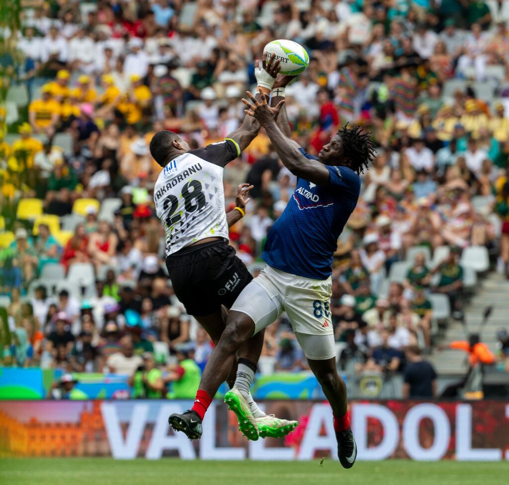 Ils auraient pu gâcher la fête, mais les Français sont passés proches de rejoindre leur première finale. Après s’être qualifiés à nouveau lors des phases de poules grâce à deux victoires contre l’Espagne (19-14) et l’Australie (29-10), mais aussi une défaite cette fois contre l’Argentine (19-24), les Bleus étaient éliminés en demies par les locaux sud-africains. Comme à Dubaï, ils retrouvaient alors les Fidji pour prendre leur revanche lors du match pour la troisième place. Andy Timo lançait les hostilités après une longue possession tricolore, mais les intenables fidjiens réagissaient par deux fois grâce à Terio Veilawa et Viwa Naduvalo. Bien décidés à ne pas laisser cette nouvelle médaille filer, les Français scoraient juste avant la pause par Liam Delamare pour revenir à 14-14. Mais les Fidjiens enfonçaient le clou dans le second acte. Sevuloni Mocenacagi et Manueli Masamoa inscrivaient deux nouveaux essais pour distancer les Français (14-26). Malgré une ultime réalisation de Simon Désert, les Bleus échouaient à nouveau dans cet ultime face-à-face (19-26).
