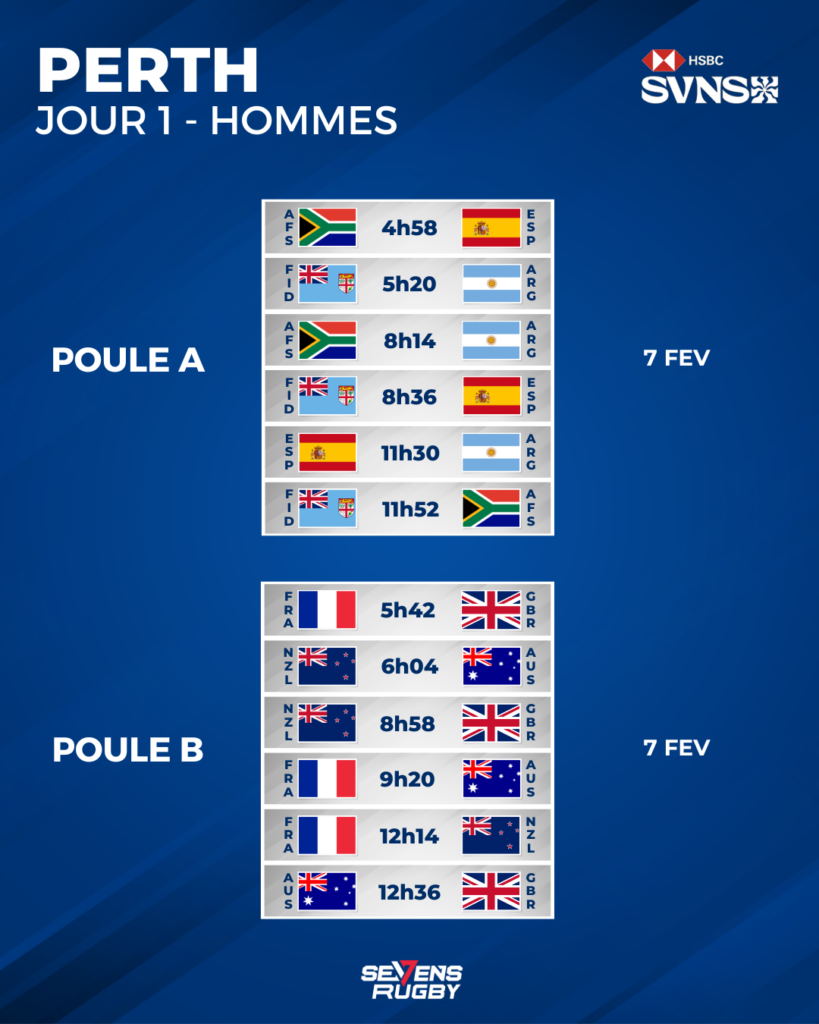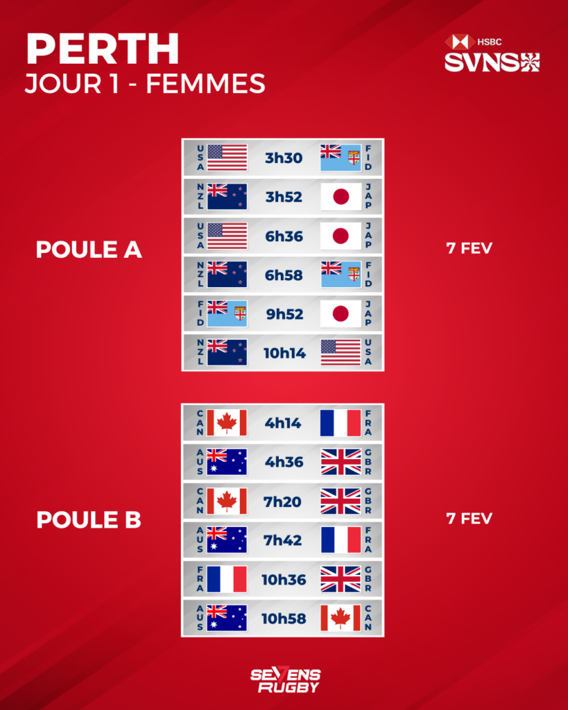 Une journée bien remplie attend les équipes ce samedi sous la chaleur australienne ! En espérant que les équipes de France 7 puissent braver les conditions climatiques pour aller obtenir de nouvelles performances !
