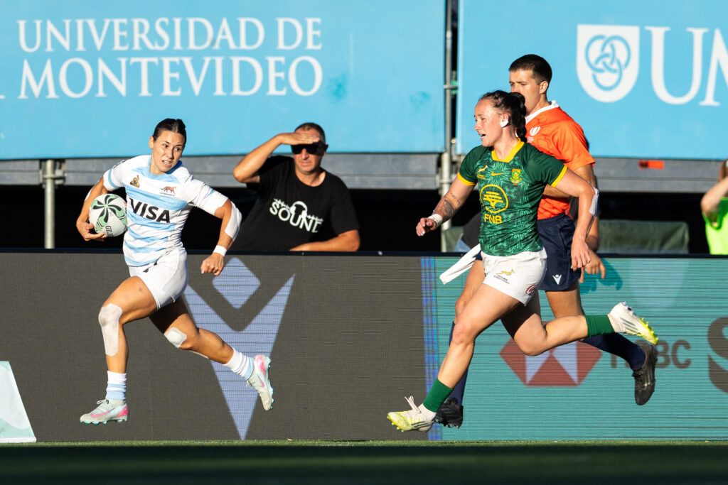 Les Pumitas sont inarrêtables cette saison sur le HSBC SVNS 2. Déjà titrées à Nairobi, les joueuses argentines ont récidivé le week-end dernier à Montevideo, réalisant un tournoi de très haut niveau. Opposées d’entrée à leurs voisines brésiliennes, elles remportaient d’ailleurs la première rencontre dans la difficulté (12-7), grâce à un essai Maria Paulo Pedrozo qui sauvait la mise en mort subite ! Contre le Kenya, la pièce tournait cette fois-ci du mauvais côté puisque l’Argentine était battue 10 à 12 dans les derniers instants. Mais la rage des Pumitas allait éclater pour battre dans la douleur la Chine (22-17) puis l’Espagne (14-12) dans la foulée, avant de dominer l’Afrique du Sud dans le dernier match. Une remontada surprenante pour l’emporter 22 à 10, après avoir été menées 7-10 à la mi-temps. L’Argentine s’offre ainsi un deuxième titre sur ce HSBC SVNS 2 et domine les débats sur le circuit féminin (40 pts) avec notamment six points d’avance sur ses dauphins, l’Afrique du Sud (34 pts) et l’Espagne (34 pts). Si ces trois nations sont d’ores et déjà qualifiées pour le HSBC SVNS World Championship, ce n’est pas encore le cas de la Chine (28 pts) qui devra batailler avec le Brésil (22 pts) et le Kenya (22 pts) pour obtenir le dernier ticket. Le suspens reste donc entier pour connaître l’ensemble des équipes qualifiées lors du dernier tournoi de São Paulo.