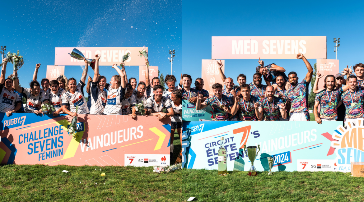 Après une année sans, les Seventise sont revenus au sommet du sevens français ! Quatrièmes seulement du Circuit Élite Sevens en 2023, bien loin de leurs standards habituels, ils ont cette saison réglé la mire et en décrochant la victoire finale à Mèze. Dans un joli duel final avec l’UBB Sevens, également en course pour le titre, ils s’imposaient après la sirène 17 à 14 sur un ultime essai en coin d’Antton Ducournau, récent champion du monde universitaire. Un succès qui aurait pu se décider plus tôt, les Seventise menant 12-0 après quelques minutes de jeu, mais l’UBB avait fini par reprendre le score (12-14) avant de craquer dans les derniers instants. L’association parisienne redevient ainsi championne de France pour la quatrième fois, et remporte son troisième Circuit Élite Sevens après 2019 et 2022. En 2021, c’était le Rugby Élite Sevens Tour, une alternative au circuit pendant la période COVID, qu’ils avaient décroché. Une récompense méritée pour les Seventise qui ont été l’équipe la plus régulière de la saison avec quatre demi-finales et deux finales à leur actif. S’ils n’ont décroché qu’un seul tournoi en remportant le Med Sevens, cela suffit aujourd’hui à combler leur bonheur et à les remettre sur le devant de la scène. La satisfaction était évidemment pleine pour Antton Ducournau à l’issue de la finale : « Sur cette dernière étape, tout restait possible, on savait que si l’on gagnait, on était champions. On a construit au fur et à mesure sur ces deux jours, et on est allés chercher la victoire avec la hargne sur la finale ! Je suis très content pour l’association. »